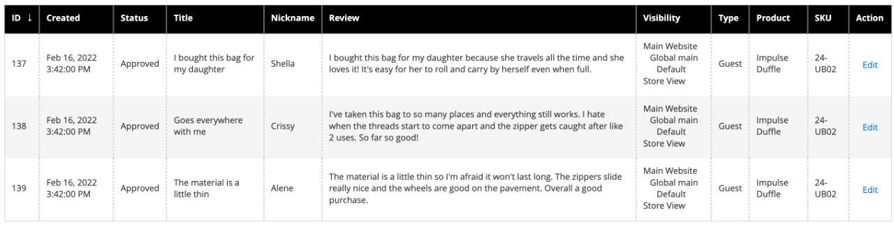 Adobe Commerce allows you to collect customer reviews, manage them, and publish them on your product tabs.