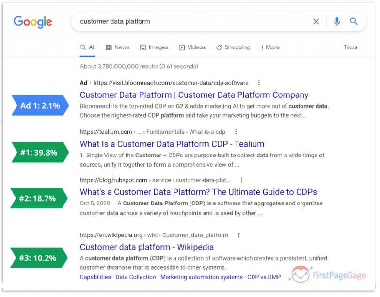 - When it comes to SEO, FirstPageSage data shows that the first organic search results have the highest CTR (click-through rate), so SEO-optimized product tabs can get you more clicks (and more sales in turn).